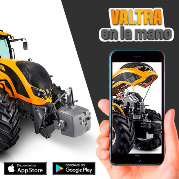 Consulte el manual de su equipo y muchas otras informaciones para la conservación, operación y ajustes para el perfecto funcionamiento de su máquina Valtra en la aplicación “Valtra en la Mano”. ¡Descárgalo ahora en tu tienda de aplicaciones! Disponible para sistemas iOS y Android .